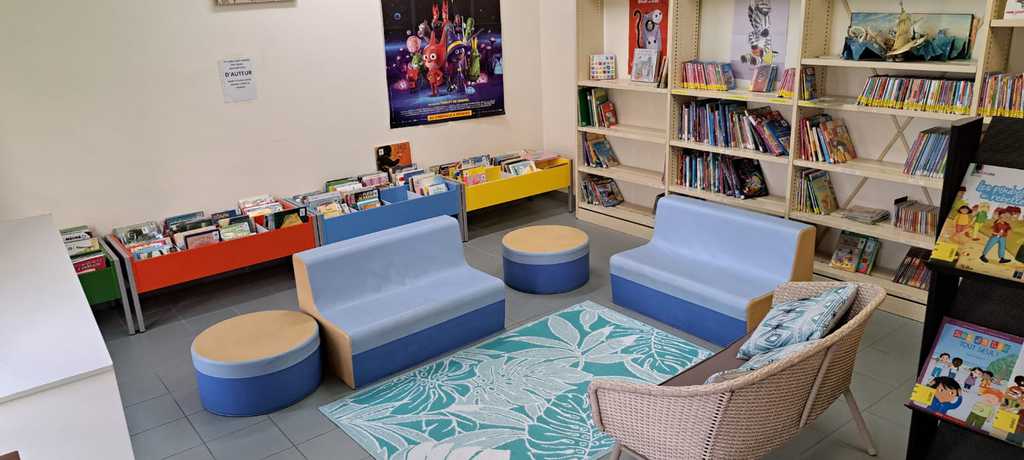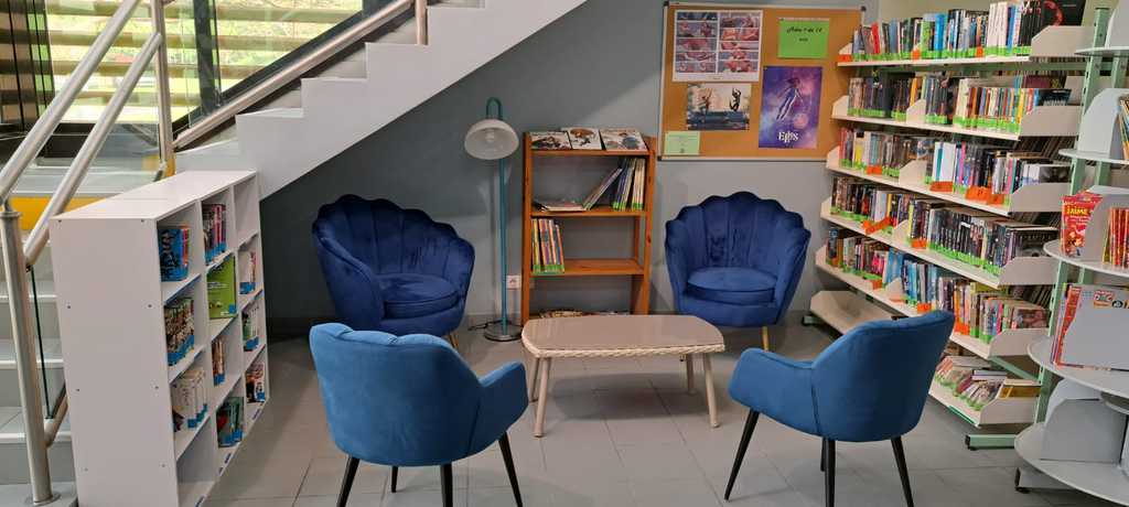 La bibliothèque est située au rez-de-chaussée du bâtiment de vie sociale